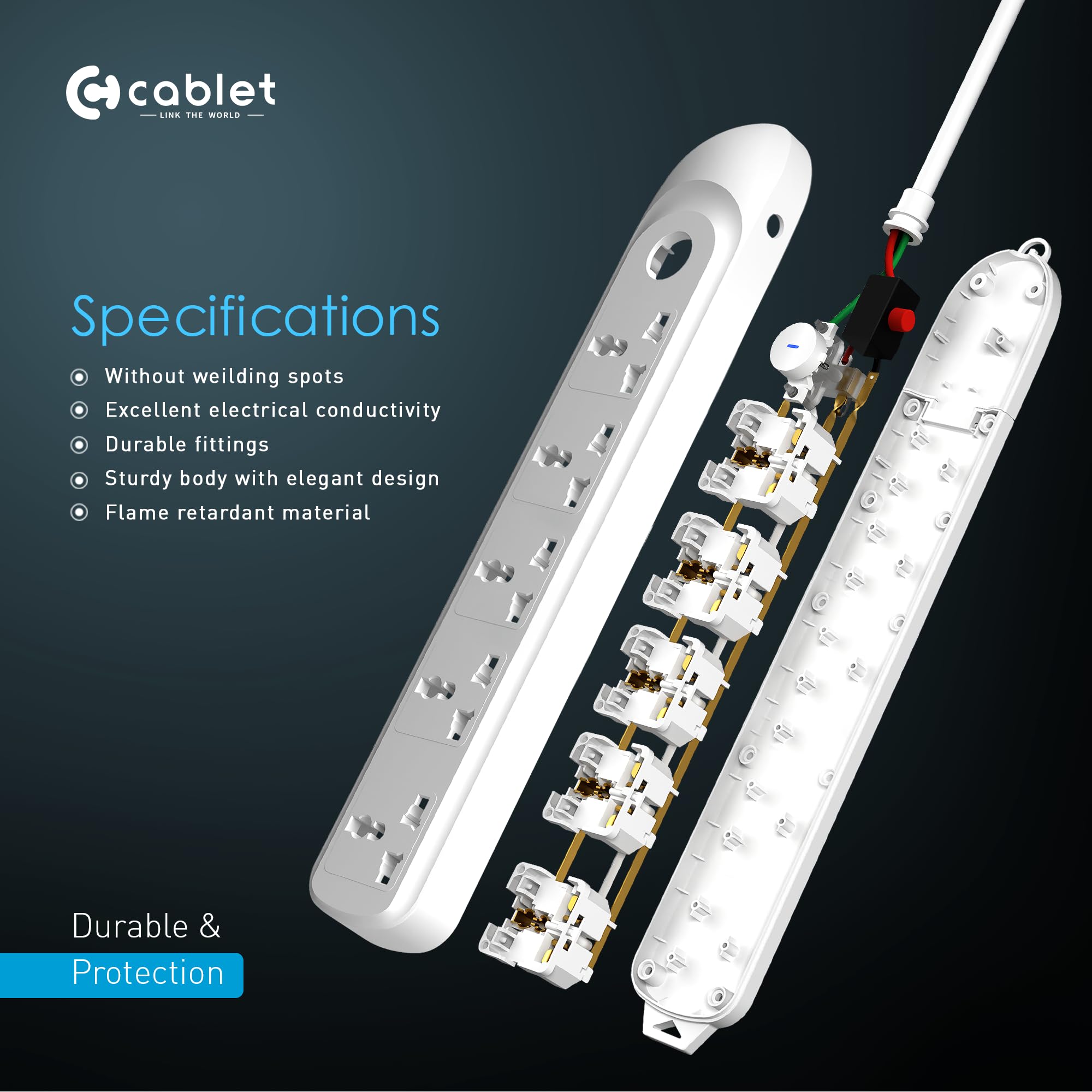 Crafted with high-grade, fire-retardant plastic for durability, this multi-plug extension board is perfect for both home and office use. Whether you’re working from a desk, charging gadgets, or powering your entertainment setup, trust Cablet for secure and long-lasting performance.