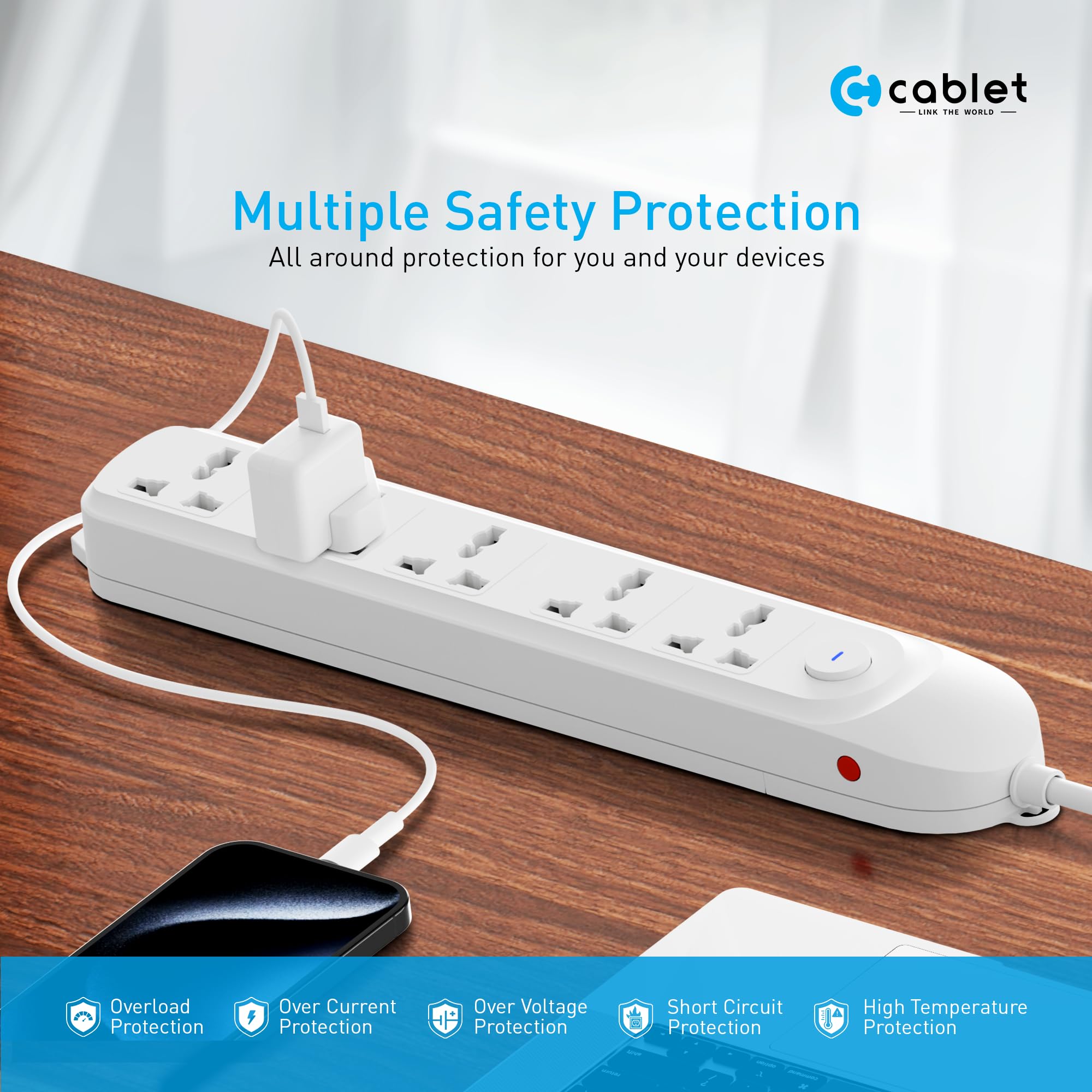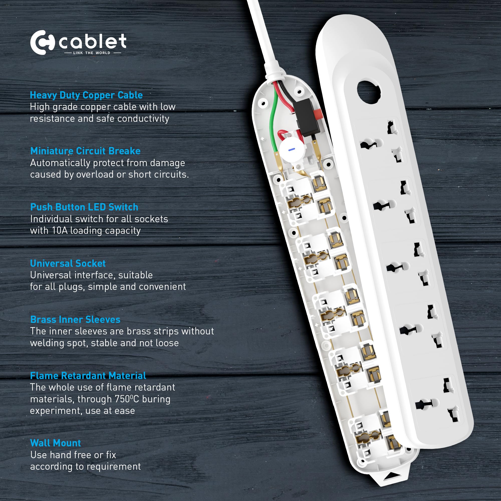 Details: Cablet Power Extension Board with 5 Universal Sockets is built for safe and efficient power distribution for your daily electronics. With a 6 Amp rating and 1500W capacity, this board supports various devices like computers, TVs, routers, printers, and more.