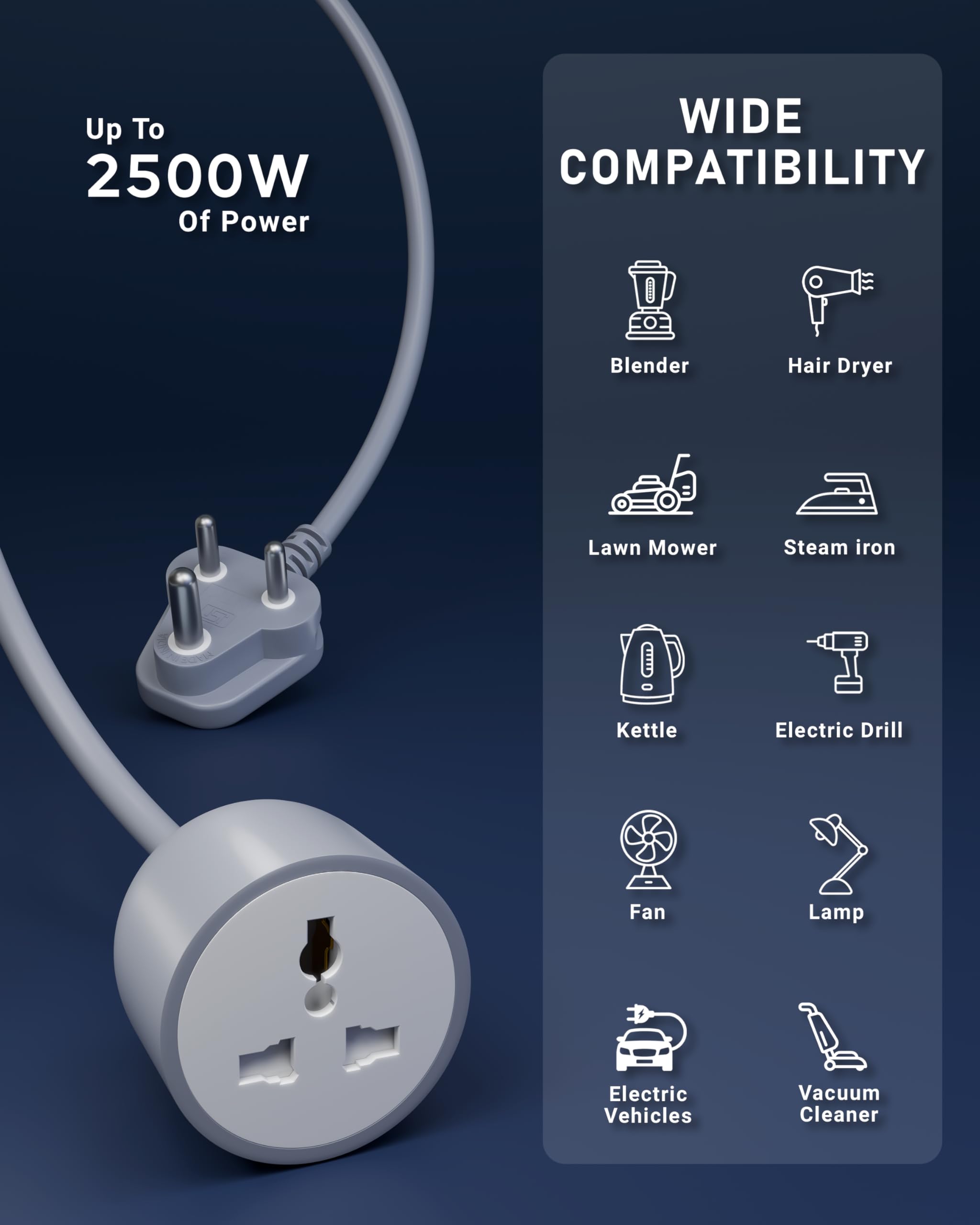 - ▶UNIVERSAL COMPATIBILITY: Ideal for home, office, kitchen, outdoor garden and A Wide Range Of Low & High-Wattage Home, Office, EV two-wheeler And Kitchen Appliances, Such As Toasters, drills, Coffee Makers, Blenders, Mixers, Kettles, Iron, Angle grinder, Blower, Water Purifiers, Chimneys, Televisions, Vacuum Cleaners,Treadmills, Dryers,Pressure Washers, Grills,lighting, lawn, garden equipment decoration, phone chargers, vacuum cleaners, and other household electronics need a little extra length.