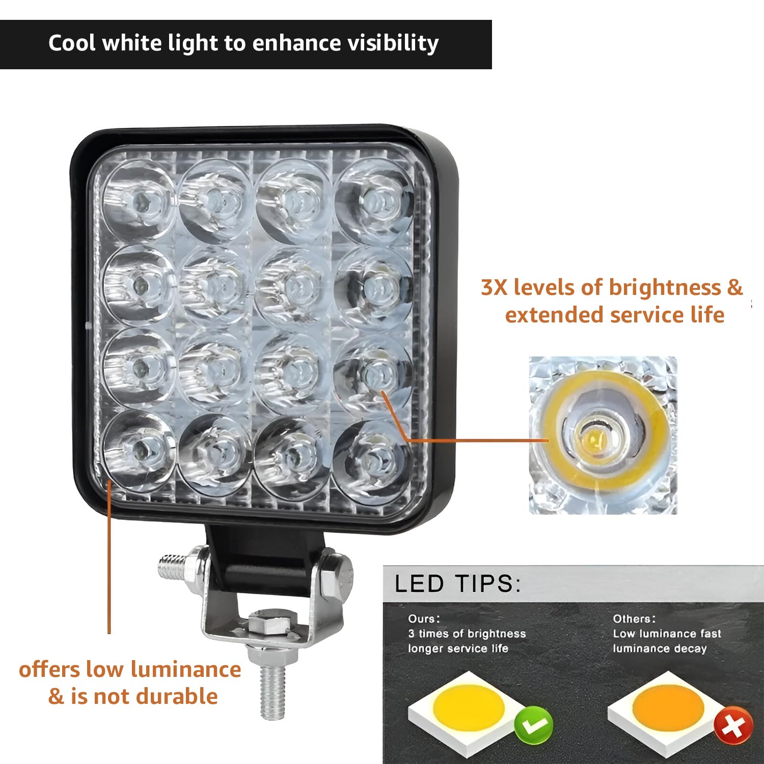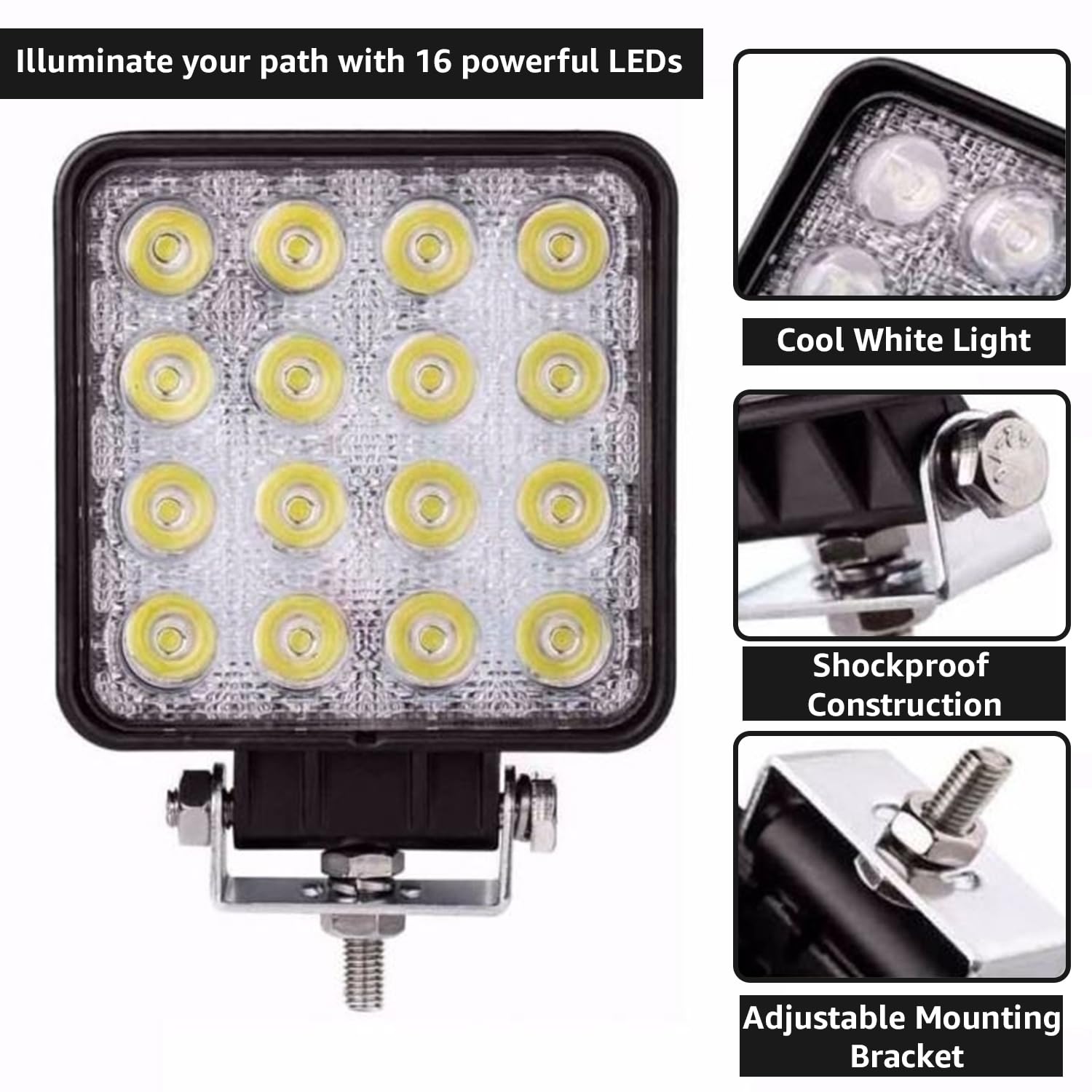 - LED LIGHTING: Equipped with 16 powerful LEDs per light, providing 48W of bright, focused beam light for enhanced visibility in foggy, rainy, and low-light conditions, ensuring safe driving.
