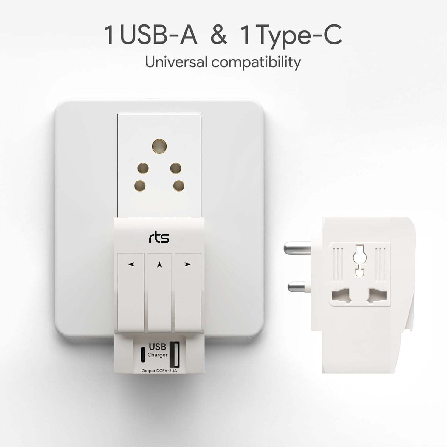 - ✅ All 3 Pin Indivisual Adapter and 1 USB port And 1 Type C port Work at same time.✅rts Multi-Pin-Plug adapter withstands frequent usage because of the solid brass pin or rough usage, also ideal for job works where professional electronic usage is required. Easily fits in the smallest corner of your bag if you are working professional, makeup artist or technician.