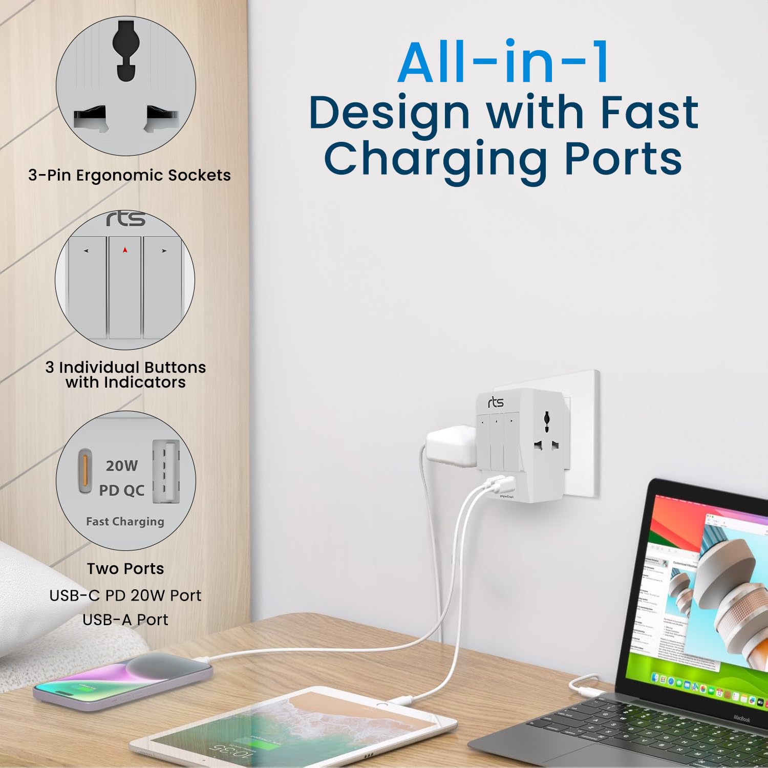 - ✅POWER & PLUG: The rts 3 Pin Plug provides power to your Heavy Duty and Normal Appliances & Gadgets like Home / Office / Industrial Use / Laptop / Desktop / PC / Mobile / Power Bank / Wireless Headphones / Smartphone / Tablet / iPad / iPhone / Charger / Camera / TV / Television / Printer / Music System / Clothing / Iron / Drill Machine / Juicer Mixer Grinder / Lamp / Fan / Kettle/ Scanner / Bar code printer / instruments / VCD and DVD players / other sensitive electronic equipment Etc.